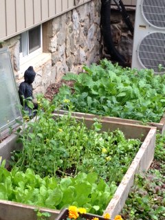 Lots and lots of greens in this part of my garden – kale, collards, tatsoi, spinach, endive, escarole and cress. Yummy! We have already been eating out of this side.